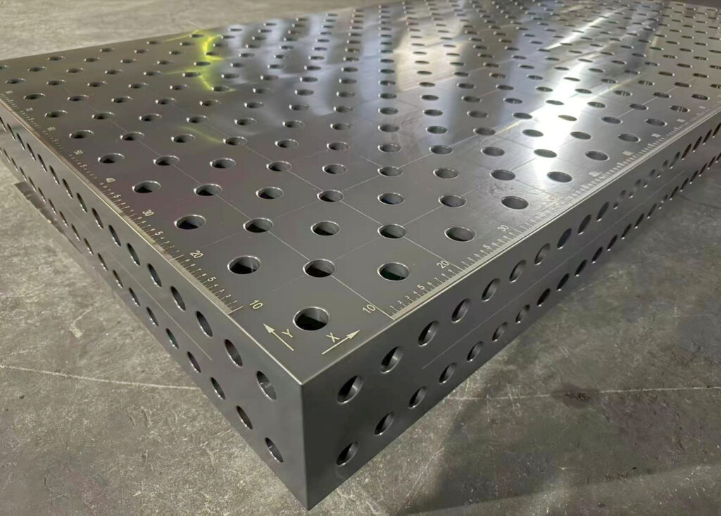 3D定盤は、溶接工程の効率化と精度向上を実現するための高機能な作業台です。従来の平面定盤とは異なり、定盤表面に多数の穴やスロットが配置されており、専用の治具やクランプを自在に取り付けることで、複雑な形状のワークでも高精度な位置決めと固定が可能です。
